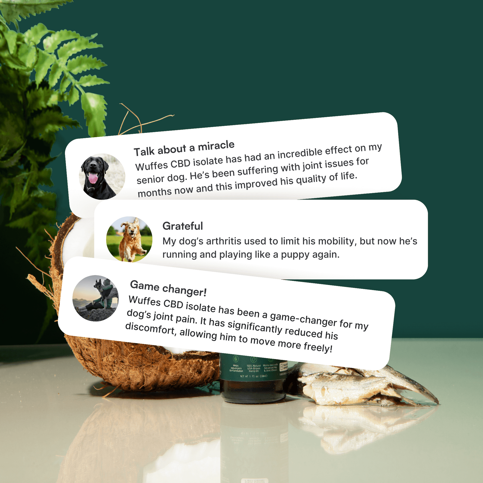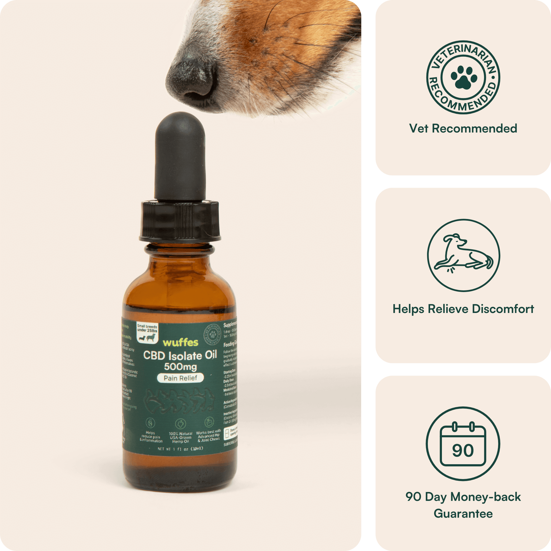 We recommend combining our Advanced Hip & Joint Support chews with CBD Isolate Oil. CBD works quickly for fast results while our joint chews work over time to provide bone reinforcing factors.